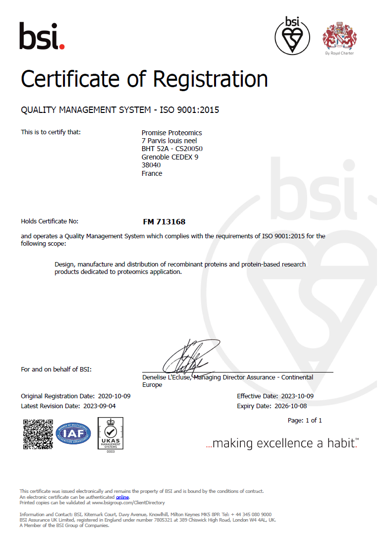 Promise Proteomics is ISO 9001 and ISO 13485 certified.