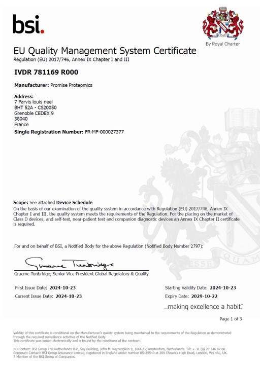 Promise holds also CE-IVDD (self-certification) for 3 kits of the mAbXmise range (ITDM1, OTDM1 and GTDM) and CE-IVDR for 4 kits (ITDM2, HTDM, PNHTDM and IADA1).
