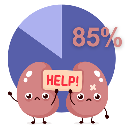 When the capacity of the kidneys is reduced by 85%, dialysis or a kidney transplant is essential!